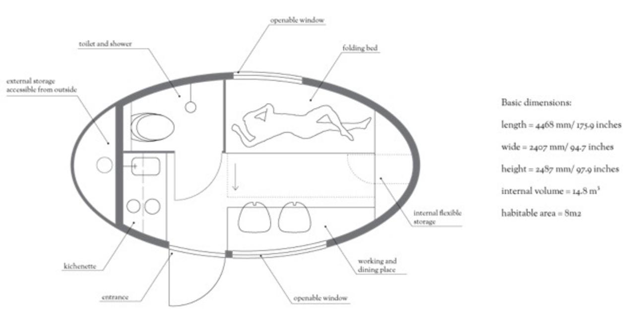 Είναι σαν μια κάψουλα επιβίωσης, με τους σχεδιαστές να υποστηρίζουν ότι είναι εξοπλισμένο με όλα τα απαραίτητα που απαιτούνται για μια άνετη παρατεταμένη διαμονή, χωρίς την ανάγκη για επαναφόρτιση ή ανεφοδιασμό.