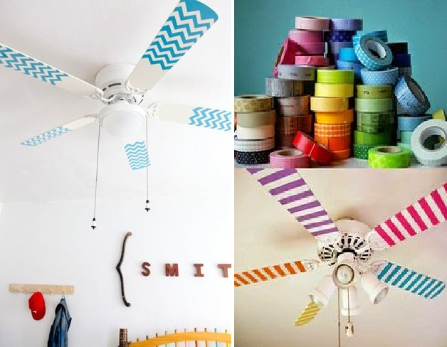 1. Με αυτοκόλλητα – washi tapes O απλούστερος τρόπος να αλλάξετε εντελώς μορφή σε έναν …άχαρο ανεμιστήρα επιλέγοντας σχέδια και αποχρώσεις ανάλογα με το τι ταιριάζει στο δωμάτιο που βρίσκεται π.χ χρώματα που να «δένουν» με την συνολική διακόσμηση ενός χώρου, παιδικά σχέδια-παραστάσεις για εκείνους που βρίσκονται σε παιδικά δωμάτια κλπ.
