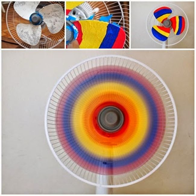 Εξαιρετικά εντυπωσιακή η όψη ενός ανεμιστήρα που όσο λειτουργεί σχηματίζει ένα …ουράνιο τόξο, κάτι που μπορείτε να πετύχετε βάφοντας ανάλογα και με τον τύπο του ανεμιστήρα κάθε πτερύγιο σε ένα διαφορετικό από τα βασικά χρώματα του τόξου ή συνδυάζοντας πάνω στο ίδιο πτερύγιο μπλε, κόκκινο, πράσινο, κίτρινο.